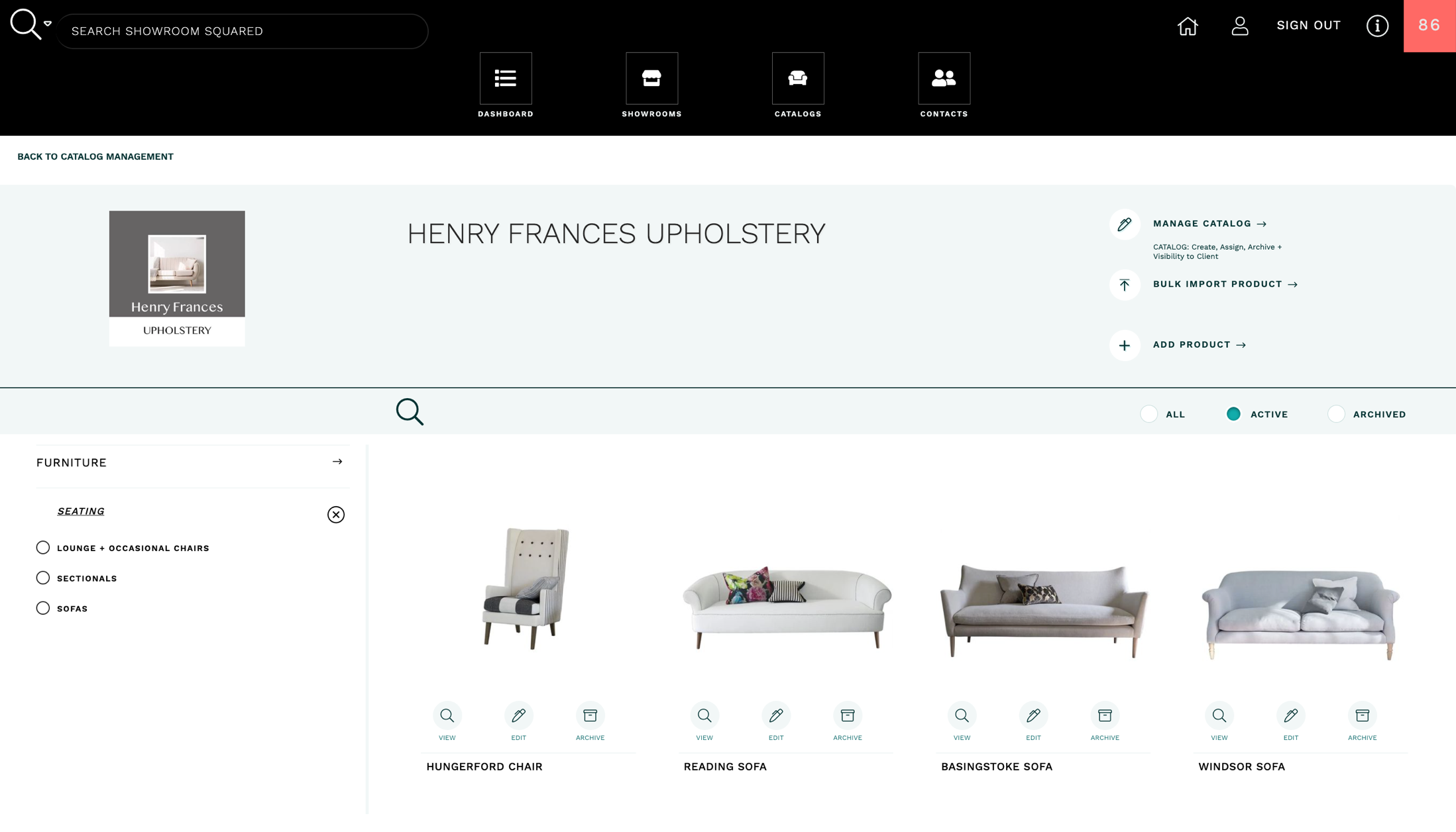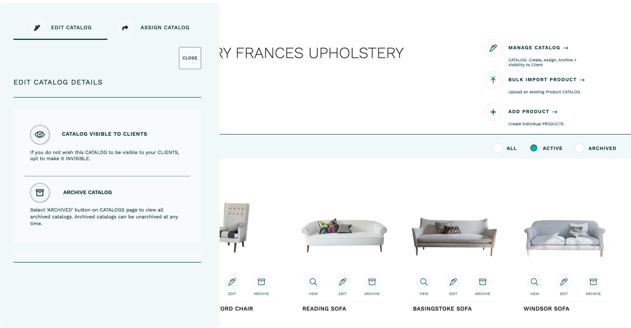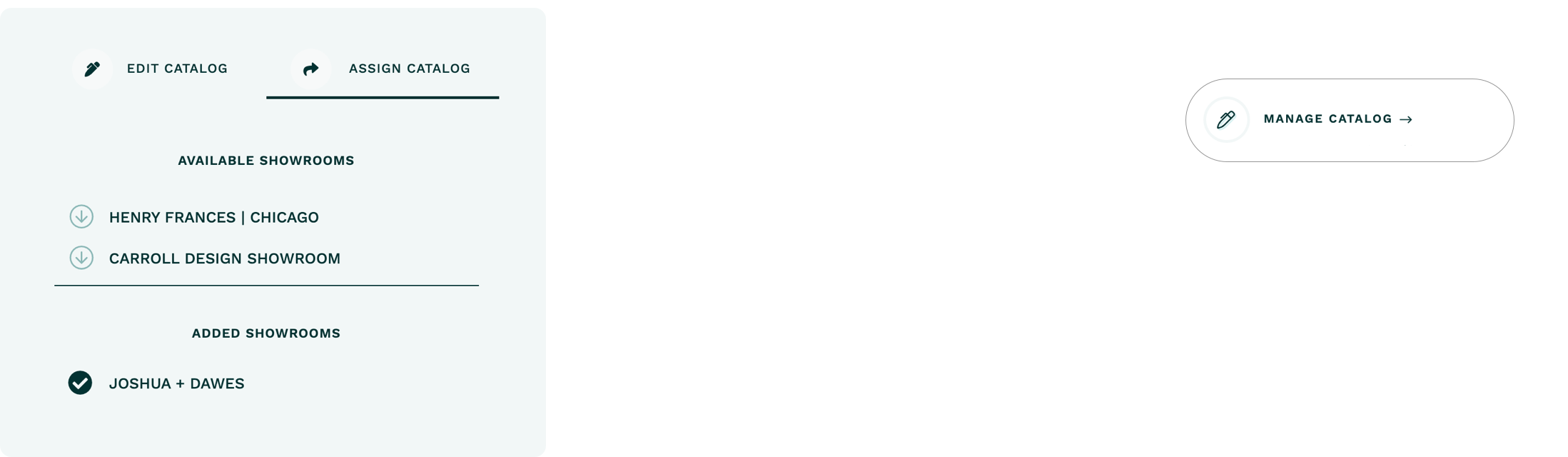 ASSIGN CATALOG to your Showrooms so that they, and their clients, have access to your catalog to create quotes and orders.