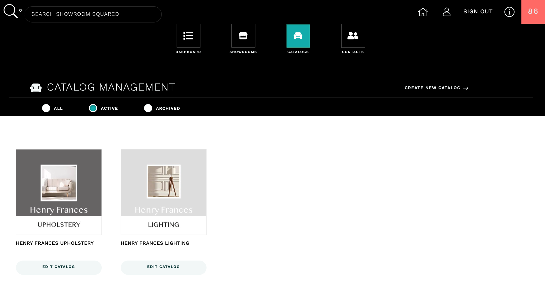 Go to CATALOGS dashboard. From here you can edit your catalogs and create new catalogs.